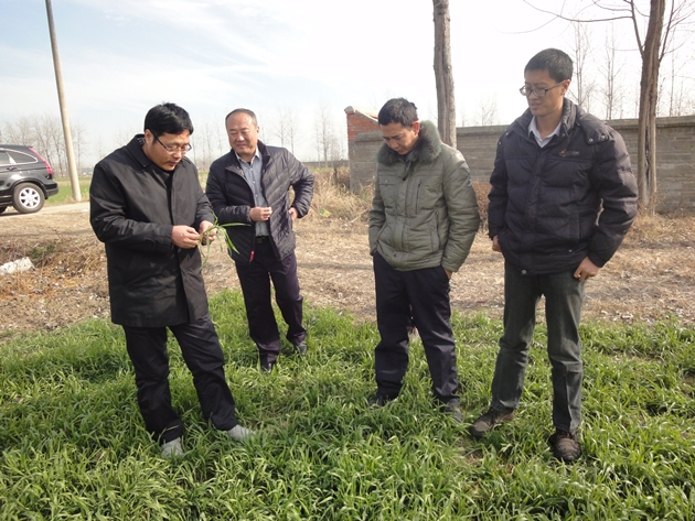 12月17-18日,國家小麥工程技術(shù)研究中心副主任、河南省小麥產(chǎn)業(yè)技術(shù)體系栽培崗位專(zhuān)家王晨陽(yáng)研究員帶領(lǐng)團隊成員謝迎新博士等一行來(lái)信陽(yáng)調研,主要了解信陽(yáng)小麥抗逆增產(chǎn)栽培技術(shù)應用情況、當前小麥苗情長(cháng)勢及生產(chǎn)中存在的問(wèn)題,重點(diǎn)了解稻茬小麥隱性災害發(fā)生情況和小麥生產(chǎn)中遇到的栽培技術(shù)瓶頸問(wèn)題。副院長(cháng)、河南省小麥產(chǎn)業(yè)技術(shù)體系信陽(yáng)綜合試驗站站長(cháng)祁玉良研究員,試驗站團隊成員周?chē)诟毖芯繂T等陪同調研。