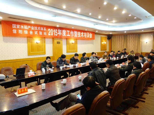 1月22日,國家水稻產(chǎn)業(yè)技術(shù)體系信陽(yáng)綜合試驗站召開(kāi)2015年工作暨技術(shù)培訓會(huì ),試驗站站長(cháng)宋世枝,副院長(cháng)祁玉良出席會(huì )議。試驗站團隊成員,市農科院水稻科研人員,羅山、平橋、息縣、潢川、固始五個(gè)示范縣區依托單位的領(lǐng)導和技術(shù)骨干共40余人參加了會(huì )議。