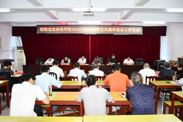 為進(jìn)一步落實(shí)十九大精神和習近平新時(shí)代中國特色社會(huì )主義思想,提高本院黨的建設質(zhì)量和水平,5月18日下午,我院召開(kāi)2018年度黨建暨黨風(fēng)廉政建設工作會(huì )議。院領(lǐng)導段仁周、韓勛來(lái)、王青林、段斌,市紀委監委駐市農業(yè)局紀檢監察組周應傳、李彬青出席會(huì )議,全院11個(gè)支部負責同志參加會(huì )議。會(huì )議由院長(cháng)段仁周同志主持。