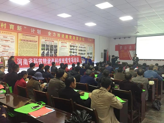 11月5日上午,我院與羅山縣農業(yè)局聯(lián)合召開(kāi) “羅山縣再生稻技術(shù)培訓暨現場(chǎng)觀(guān)摩會(huì )”,羅山縣農業(yè)局負責同志、羅山縣各鄉鎮農業(yè)發(fā)展中心負責人、種田大戶(hù)等70多人參加了培訓會(huì )。