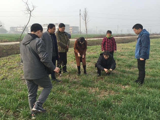 在院總農藝師段斌等人的陪同下,李向東先后實(shí)地察看了平橋區肖王鄉梁灣村的鄭麥103示范區、羅山縣子路鎮朱灣村鄭麥113示范區、息縣息縣東岳鄭麥103千畝示范區、淮濱農場(chǎng)固城分廠(chǎng)鄭麥103千畝示范方、潢川縣魏崗鄉鄧店村鄭麥113示范田等地,認真查看了示范區苗情、長(cháng)勢及病蟲(chóng)草害發(fā)生情況,對各示范區防治雜草的效果給予了充分肯定,對市農科院的工作給予了高度贊賞。