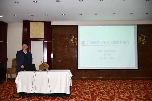 培訓會(huì )上,周晚來(lái)博士、趙文生教授、段斌副研究員、油菜試驗站站長(cháng)程輝副研究員先后作了“環(huán)保型麻纖維膜應用技術(shù)”“水田綠肥主要病蟲(chóng)害及其防治”“豫南粳稻高產(chǎn)栽培技術(shù)”“雙低菜籽油的營(yíng)養功能”的專(zhuān)題講座。