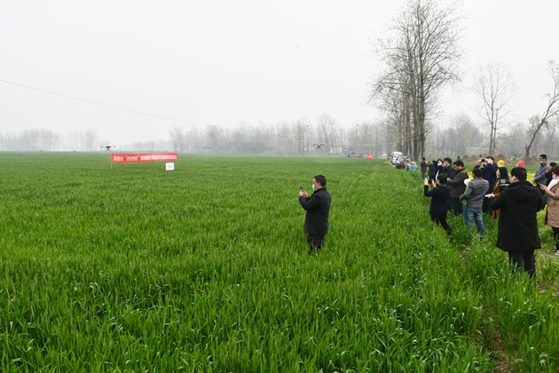 信陽(yáng)位于我省最南部,是全國弱筋小麥生產(chǎn)核心區。當前,我市小麥生產(chǎn)與全省其它地市相比,已先期進(jìn)入了抽穗揚花期。為保證今年我市小麥生產(chǎn)安全和品質(zhì)安全,確保豐產(chǎn)豐收,4月3日,由我院承擔的河南省“四優(yōu)四化”優(yōu)質(zhì)小麥專(zhuān)項“豫南弱筋小麥新品種與抗逆保優(yōu)技術(shù)集成與示范”專(zhuān)題“一噴三防”現場(chǎng)觀(guān)摩會(huì )在羅山縣東鋪鎮召開(kāi),在全省率先打響了小麥赤霉病防控工作第一槍。