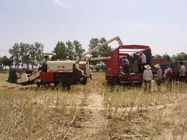 操作手熟練地駕駛著(zhù)兩臺收割機在田間來(lái)回穿梭,一次性完成切割、脫粒、分離、清選作業(yè),粉碎后的秸桿均勻地鋪灑在地面上,一會(huì )兒工夫,現場(chǎng)演示的幾十畝油菜就被收割干凈,作業(yè)效率之高令前來(lái)觀(guān)摩的種植戶(hù)贊嘆不已。幾名工人站在一臺大貨車(chē)上麻利地在收割機滾筒出口處把油菜籽裝袋、扎口,碼放,裝滿(mǎn)后直接運往糧油加工企業(yè)銷(xiāo)售。