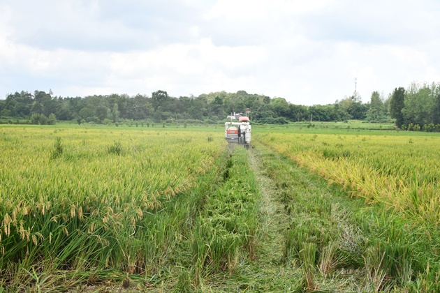 立秋剛過(guò),我市30多萬(wàn)畝再生稻頭季就迎來(lái)了收割期。8月11日,在光山縣南向店鄉何畈村,收割機在金燦燦的稻田里來(lái)回穿梭,呈現出一幅美麗的豐收畫(huà)卷。