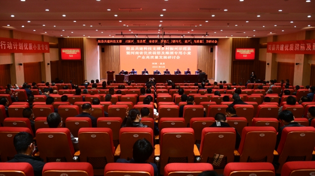4月26-27日,由河南省農業(yè)科學(xué)院、息縣人民政府、我院主辦,息縣農科所承辦的院縣共建科技支撐鄉村振興示范縣暨河南省優(yōu)質(zhì)弱筋及釀酒專(zhuān)用小麥產(chǎn)業(yè)高質(zhì)量發(fā)展研討會(huì )在息縣隆重召開(kāi)。中國工程院院士、省農科院院長(cháng)張新友,省農科院副院長(cháng)衛文星,信陽(yáng)市委常委、市政府副市長(cháng)李征,息縣縣長(cháng)袁剛,省農農村廳二級巡視員李軍、省科技廳農村處處長(cháng)李錦輝、省農科院科研管理處處長(cháng)田云峰、省農科院小麥研究所所長(cháng)雷振生、省農科院科技成果示范推廣處處長(cháng)王強、我院黨委書(shū)記李杰、副院長(cháng)祁玉良等領(lǐng)導專(zhuān)家出席會(huì )議。河南省“四優(yōu)四化”優(yōu)質(zhì)小麥專(zhuān)項首席專(zhuān)家李向東以及我院和省內其他科研院所代表、省農科院科研處、推廣處、小麥所等單位有關(guān)專(zhuān)家,部分釀酒企業(yè)、種業(yè)公司、糧食企業(yè)、面制品企業(yè)以及息縣各鄉鎮(街道)黨(工)委書(shū)記、分管領(lǐng)導,息縣縣直有關(guān)單位主要負責同志和媒體記者等170余人參加會(huì )議。息縣縣委副書(shū)記林長(cháng)主持會(huì )議。