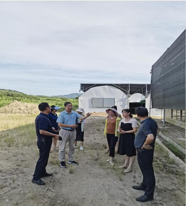 專(zhuān)家團隊一行來(lái)到試驗站“一三五五”對接服務(wù)點(diǎn)新縣田竹種養殖農民專(zhuān)業(yè)合作社。團隊詳細了解合作社應對高溫天氣采取的措施,仔細查看了越夏香菇菌棒和新建的四季恒溫出菇大棚后,針對越夏管理提出指導意見(jiàn):一是要通過(guò)間歇噴淋來(lái)降低棚內溫度,不可一直噴淋菌棒,以免高溫高濕引起爛棒;二是要通過(guò)風(fēng)機水簾等設施來(lái)輔助降溫;三是要想辦法降低成本,可利用光伏發(fā)電裝置來(lái)實(shí)現遮陰降溫,發(fā)電蓄能用于棚內設施用電,達到節能降耗、提質(zhì)增效的目的。