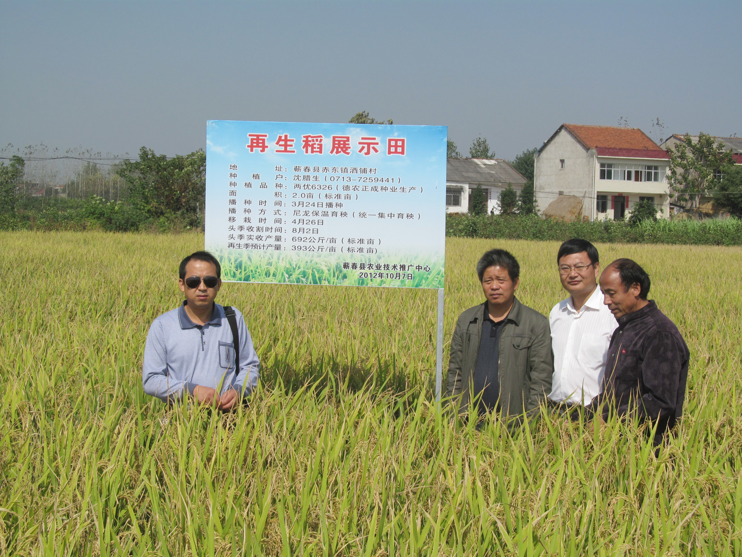 在蘄春縣原種場(chǎng)再生稻高產(chǎn)示范片,百畝連片的再生稻穗足粒多,已近黃熟,經(jīng)初步測產(chǎn),高產(chǎn)田塊再生季畝產(chǎn)超過(guò)400公斤,兩季合計畝產(chǎn)1000公斤以上,糧食增產(chǎn)效果十分顯著(zhù)?疾靾F一行詳細了解了再生稻再生季的成穗數、穗粒數等產(chǎn)量構成情況,學(xué)習了再生稻的關(guān)鍵栽培技術(shù),取得了寶貴的經(jīng)驗。