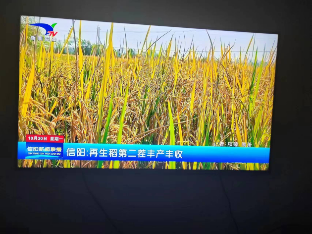 二、10月30日,信陽(yáng)電視臺《信陽(yáng)新聞聯(lián)播》欄目以“信陽(yáng):再生稻二茬豐產(chǎn)豐收”為題,報道了我院今年在推廣再生稻豐產(chǎn)技術(shù)所取得的成績(jì)。在我院的技術(shù)支持下,全市72.5萬(wàn)畝再生稻在第一季豐收已成定局的情況下,再生季又取得了喜人的成績(jì),羅山潘興、周黨等鄉鎮的再生稻經(jīng)專(zhuān)家現場(chǎng)測產(chǎn),二茬平均畝產(chǎn)在600斤左右。