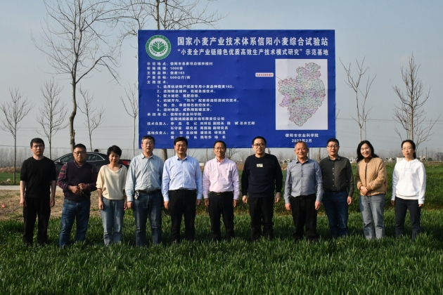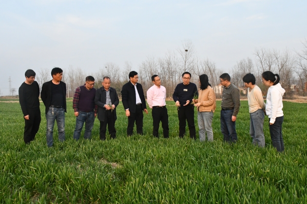 3月7-8日國家小麥產(chǎn)業(yè)技術(shù)體系崗位專(zhuān)家浙江省農業(yè)科學(xué)院蘇瑤博士、沈阿林研究員等一行4人,漯河市農科院廖平安站長(cháng)等專(zhuān)家一行3人到信陽(yáng)調研指導稻茬小麥生產(chǎn)與弱筋小麥產(chǎn)業(yè)發(fā)展情況,我院副院長(cháng)劉祥臣研究員、資環(huán)所潘滋亮研究員、小麥所石守設研究員和信陽(yáng)小麥綜合試驗站站長(cháng)周?chē)诟毖芯繂T及團隊成員等陪同調研。
